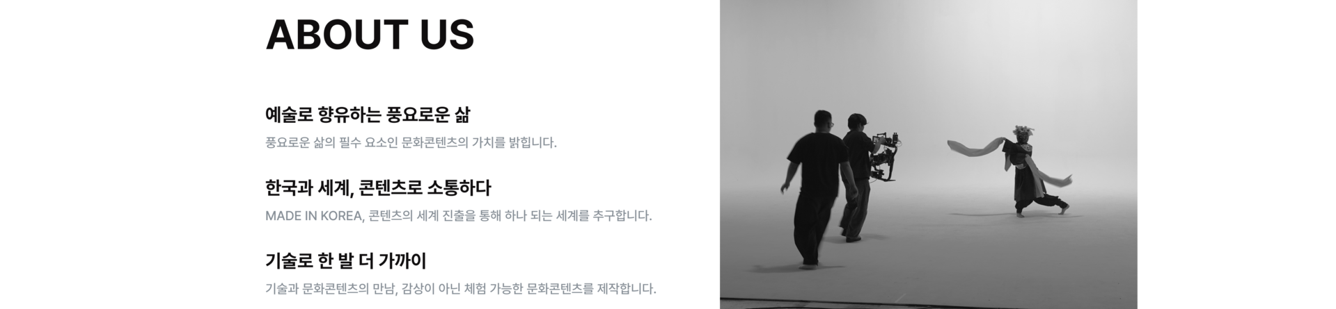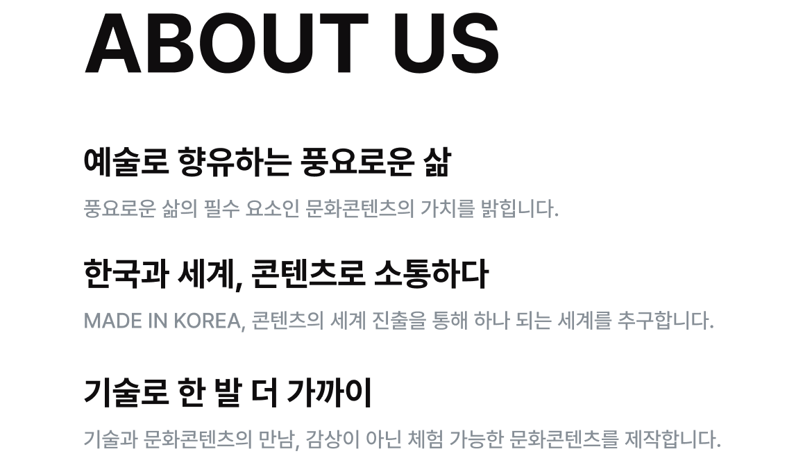 다양한 문화예술 콘텐츠를 제작하고 있습니다.문화예술의 핵심 가치에 대한 끊임없는 탐구와